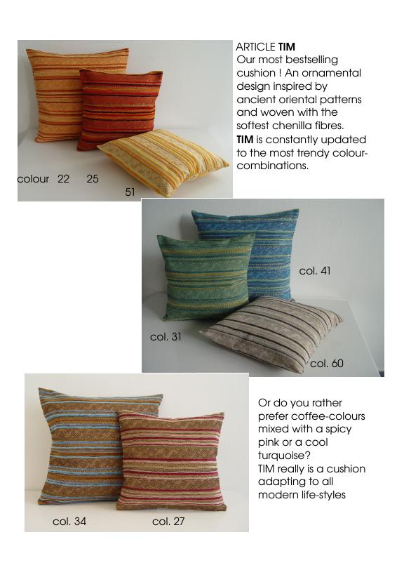 In our Range of cushions you will find three lines of basic solid colours cushions such as MILOS, DANIEL and ALMERIA always matching in colour and material the coordinates which are jaquard woven.